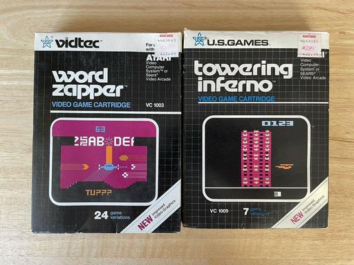 Atari 2600 ~ 2 Game Lot ~ Towering Inferno, Word Zapper Complete In Box CIB | $15.00 | Mar 27, 2022 |